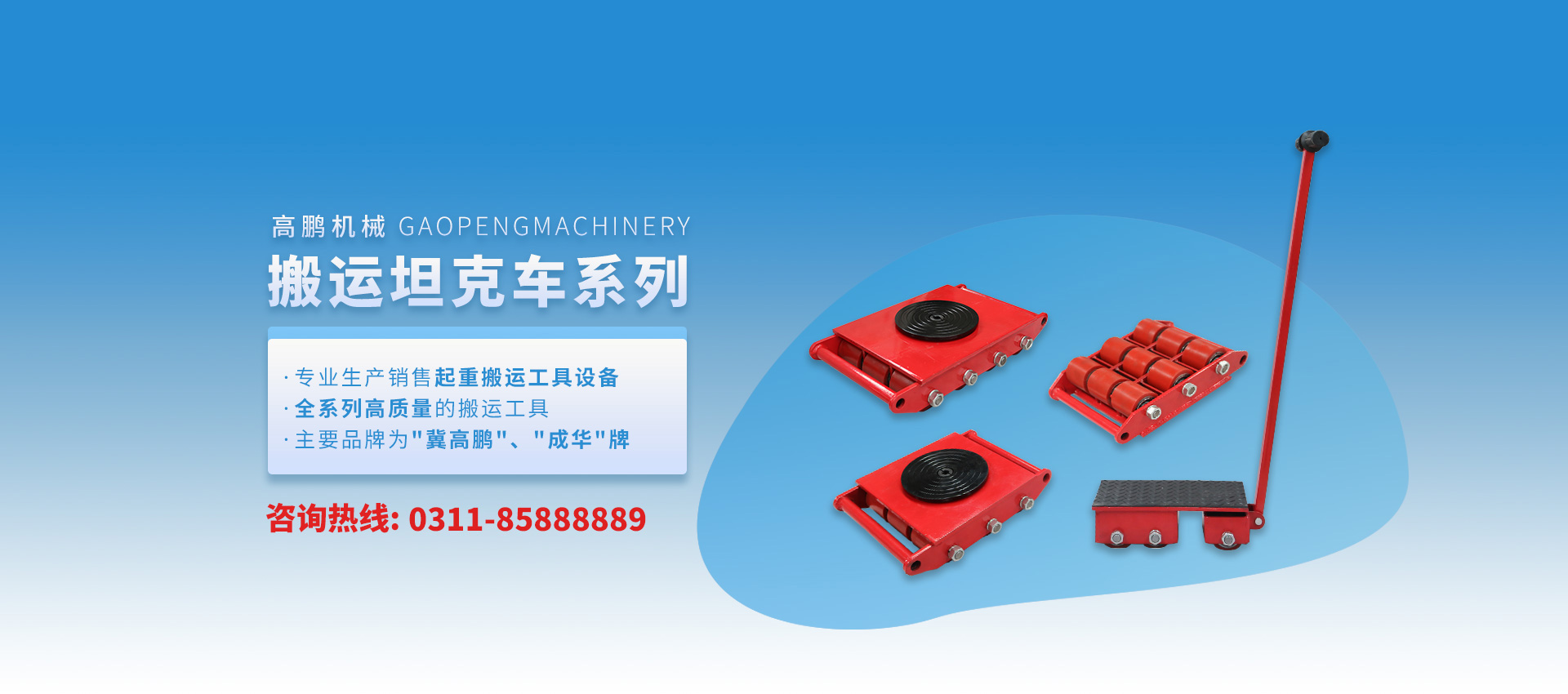 河北捷宇起重機械集團有限公司專業生產銷售起重搬運工具設備,產品主要品牌為“冀高鵬”、“成華”牌,我公司與河北成華機械制造有限公司為兄弟公司,公司開展多層面合作,希望給消費者帶來更好的設備。河北成華機械制造有限公司為多元化高新技術企業,公司旗下搬運設備廠主要生產坦克搬運車,并與世界著名品牌廠商和國內優秀企業合作,在汽車制造、醫藥業、飛機制造業、機械制造業、工程建設、物流搬運...
